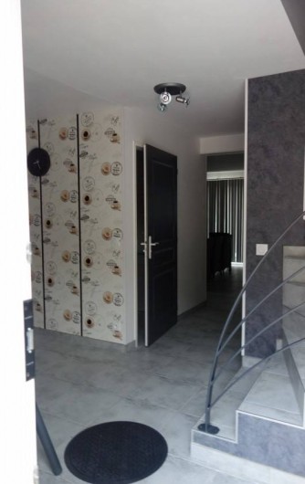 Rez de chaussée : Une entrée avec placards (balais, aspirateurs, fer et table à repasser, étendoir)