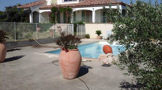 Tout confort, décor provençal, pas de vis a vis, sur grand terrain arboré d'oliviers, de lavandes, d'amandiers, et de palmiers avec pelouse, et piscine enterrée de 8 sur 4 mètres privative que pour les locataires, barbecue,