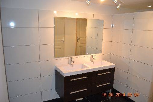 Une salle de bains, meuble 2 vasques, 2 douches, 2 WC, lave linge et séche linge.