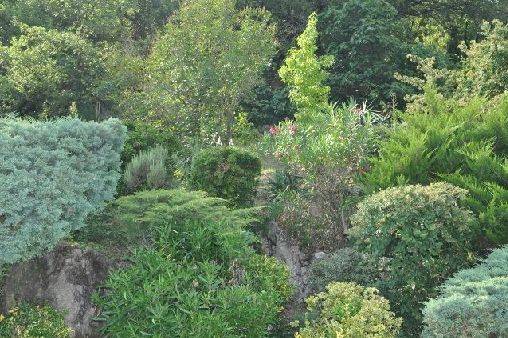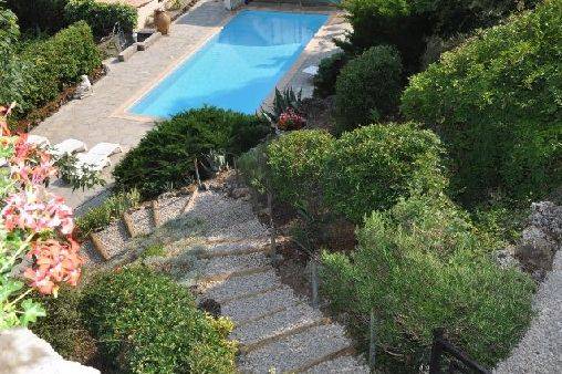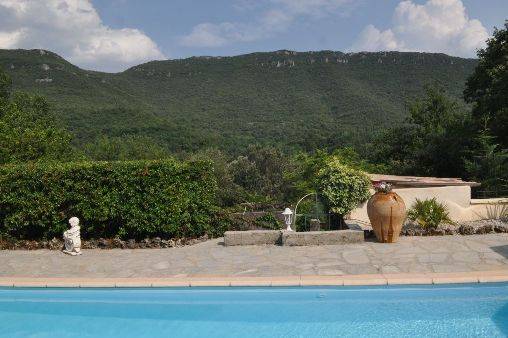au milieux un parc de 4 hectares plantés d'oliviers et de très vieux chênes. La piscine se situe en contre bas sur un des terrassiers bâtis de murs de pierres sèches.