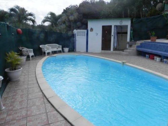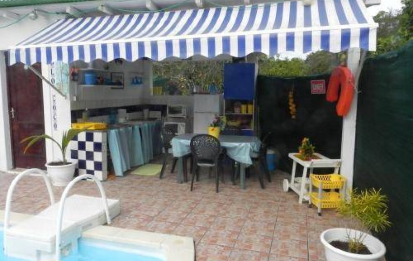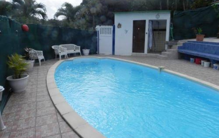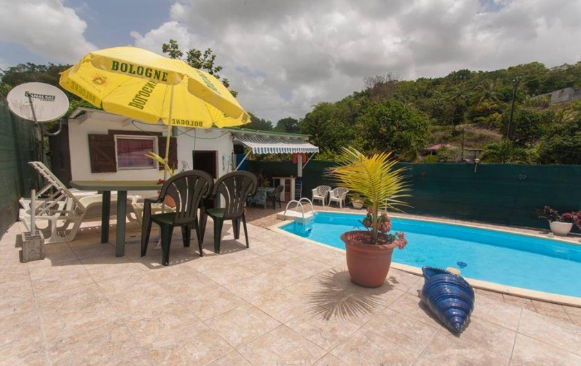 Situé dans un quartier calme et verdoyant des Abymes, le bungalow Dlo coco est construit en contre-bas d’une grande maison et au cœur d’une propriété. Totalement atypique, cette location de vacances s’organise autour d’une piscine privative de 7x3m où toutes les pièces à vivre sont disposées autour. Ainsi vous vivez votre séjour en Guadeloupe en permanence à l’extérieur, sauf pour dormir.