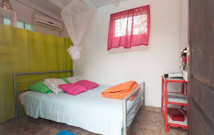 Dotée de rangements et d’une penderie, la chambre double climatisée est équipée d’une grande moustiquaire, d’une TV à écran plat et de CanalSat pour vous