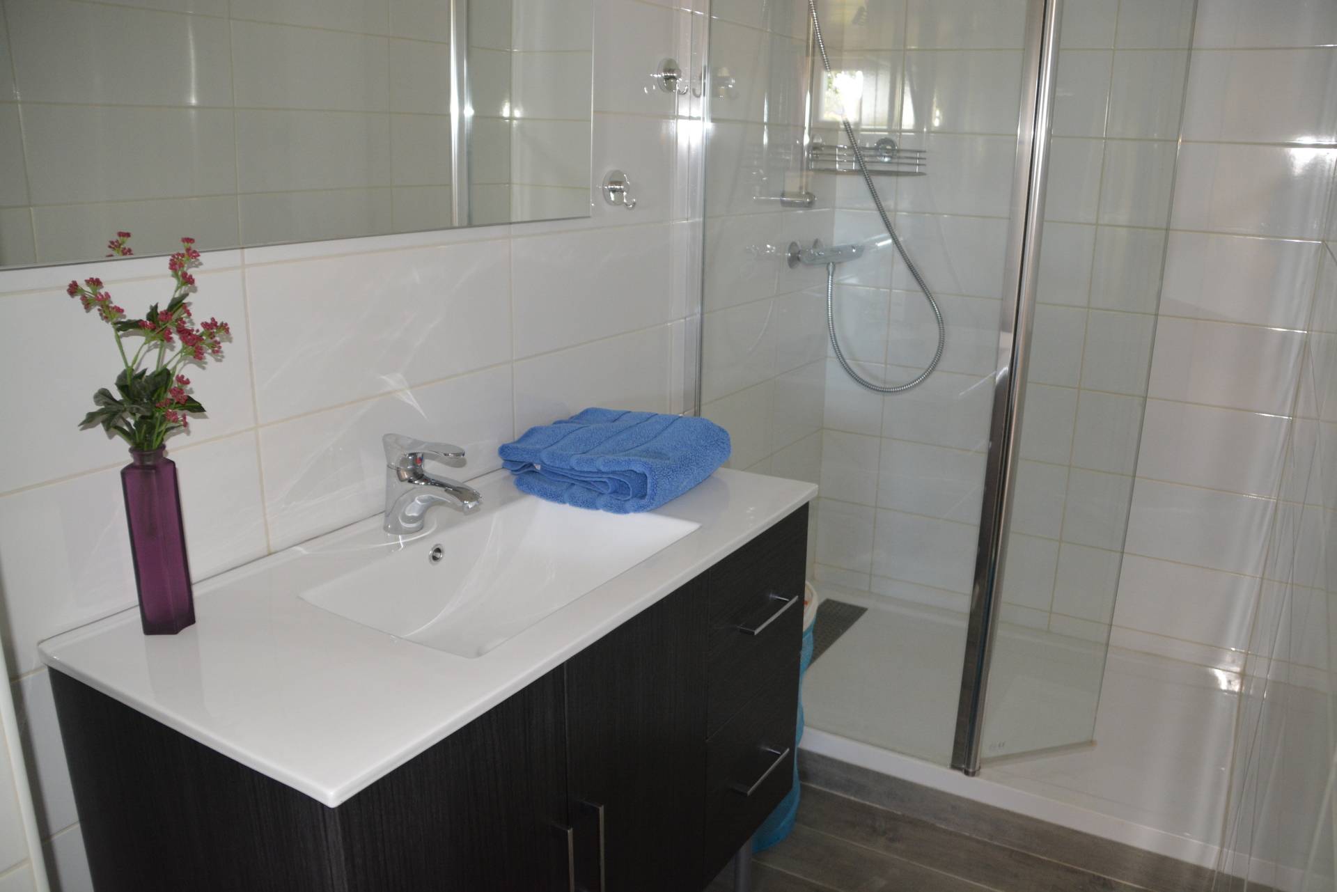 logement de plein pied de 64 m2 comprenant 2 chambres, 1 salle d'eau, wc séparé, cuisine ouverte, living.
