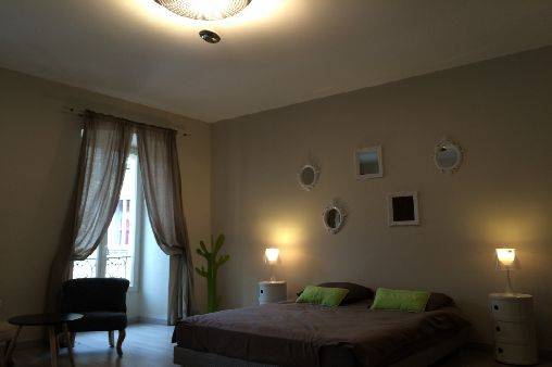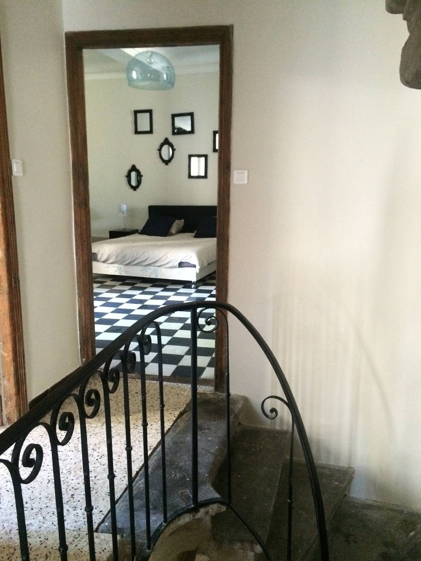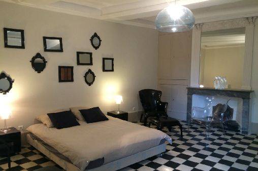 En effet des grands noms du design se cotoyent dans ce gîte. Ansi les tabourets Bubu de Starck resplendissent sous les effets des lampes de chevet Ferucio Laviani.