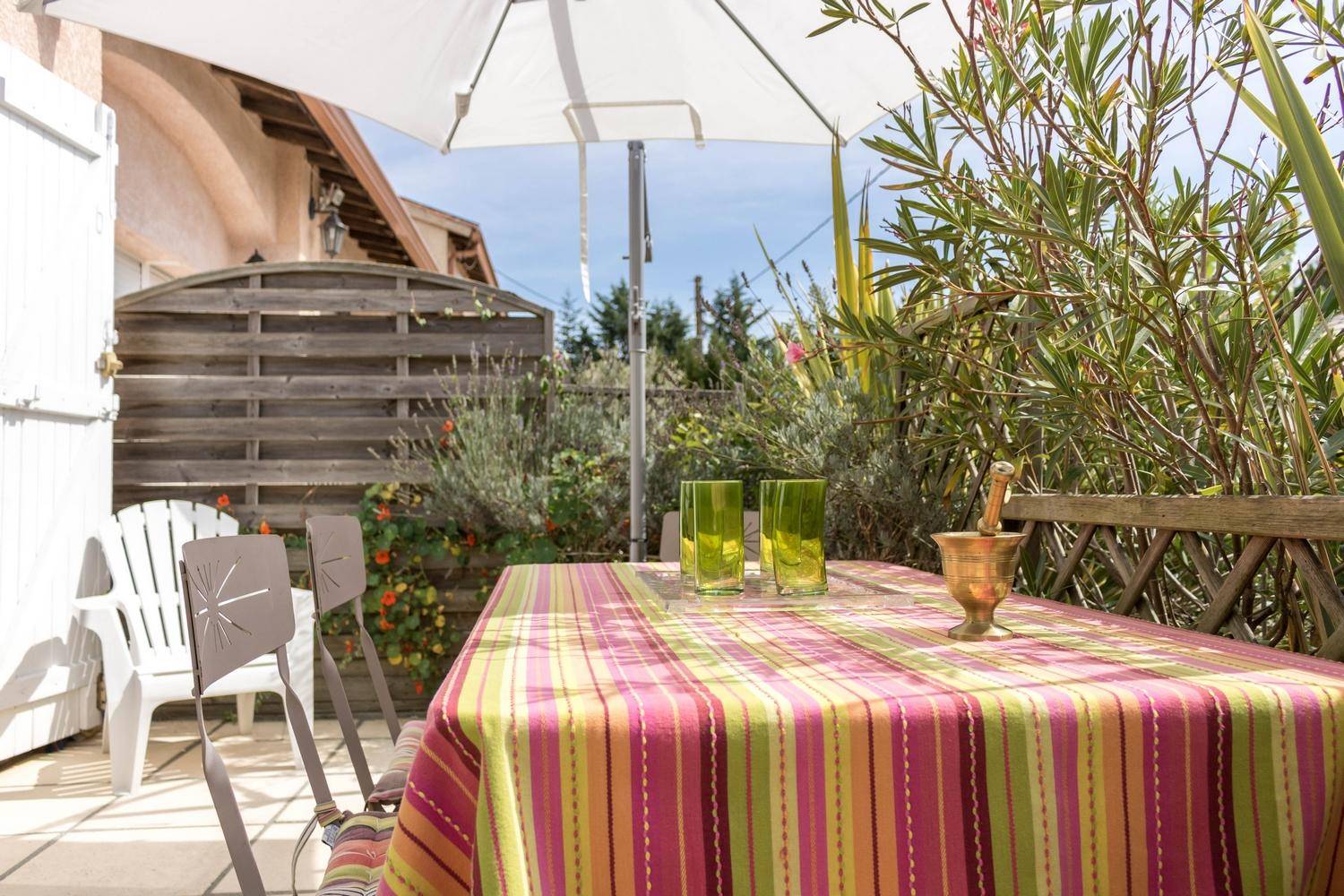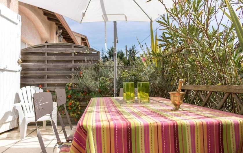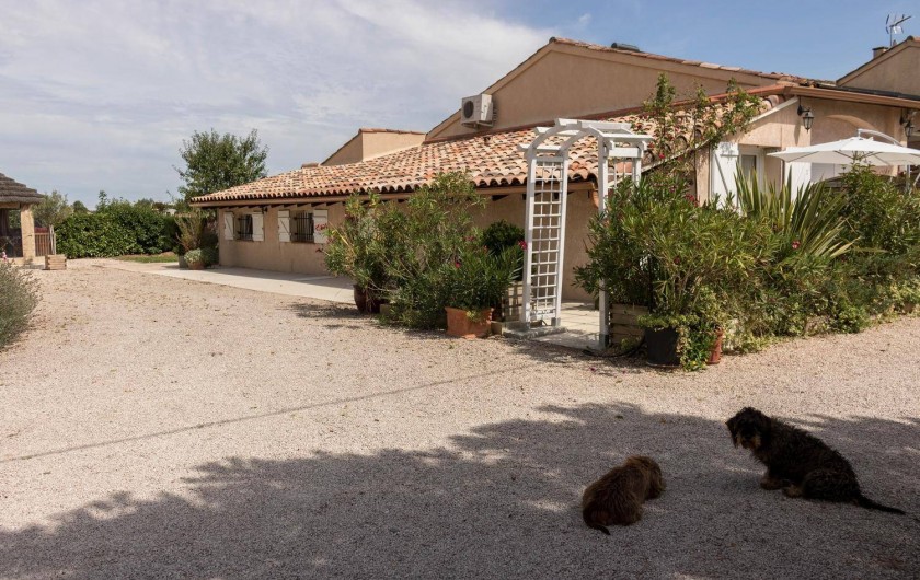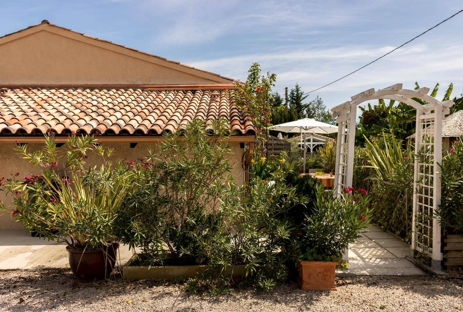 Vous disposez d'une terrasses privative devant le Gîte avec table et chaises d'extérieur, avec barbecue sur roulettes, chaises longues, parasol, avec supplément 1 paillote extérieure de 9 m² indépendante équipée d'une table octogonale avec sièges et coussins confortables pour 8 personnes, fermetures réglables et transparentes, vastes pelouses ombragées, avec votre stationnement privé devant le Gîte. Votre gîte est dans une maisonnette indépendante séparée de l'habitation principale.