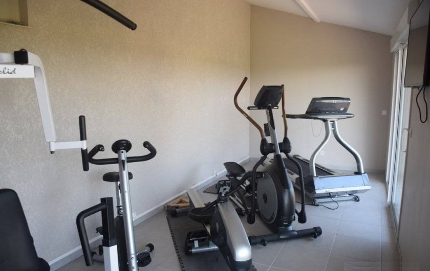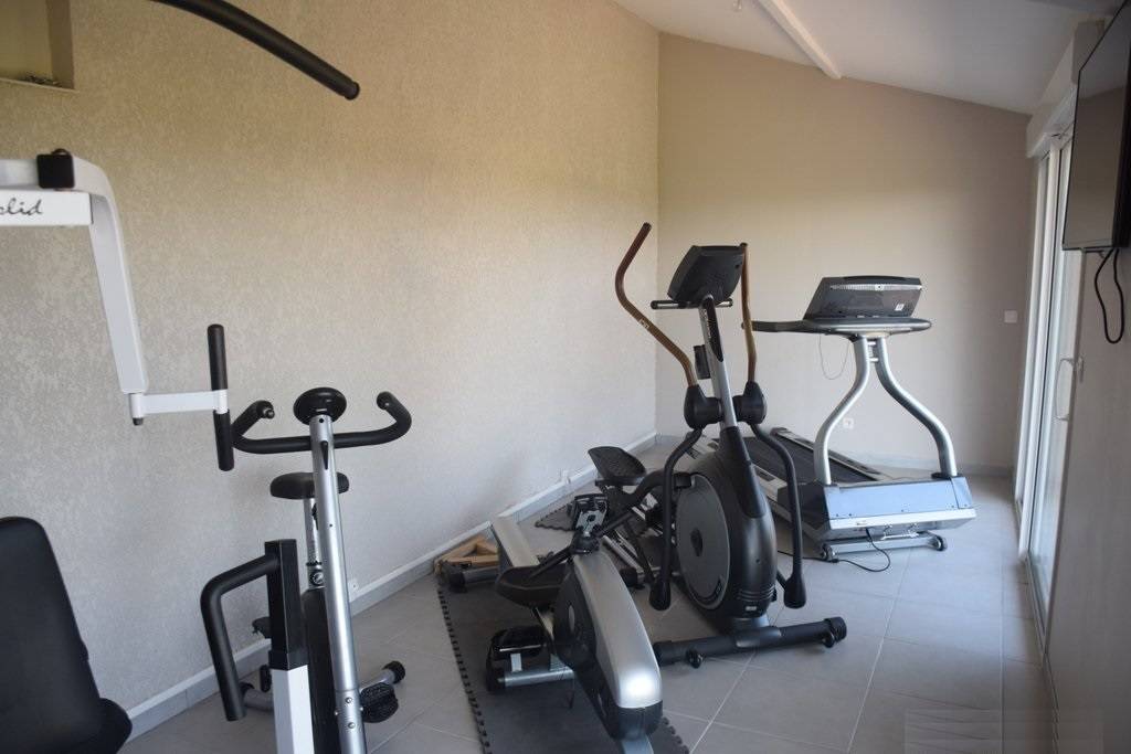 Belle salle de sport avec tapis de course, stepper, vélo simple et vélo elliptique, rameur, banc de musculation, Télévision, accès sous conditions.