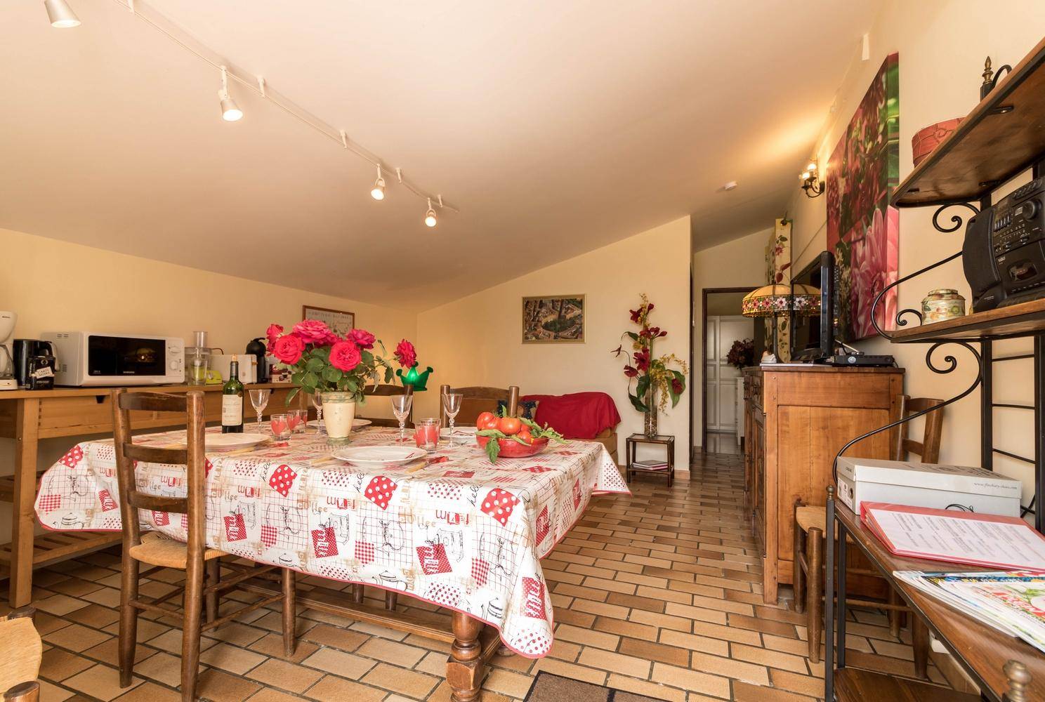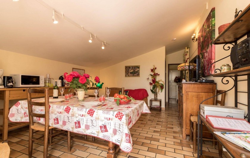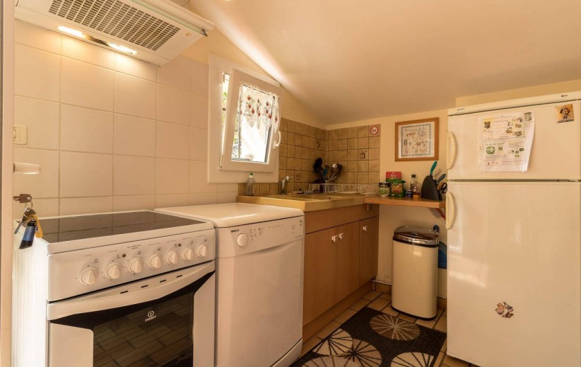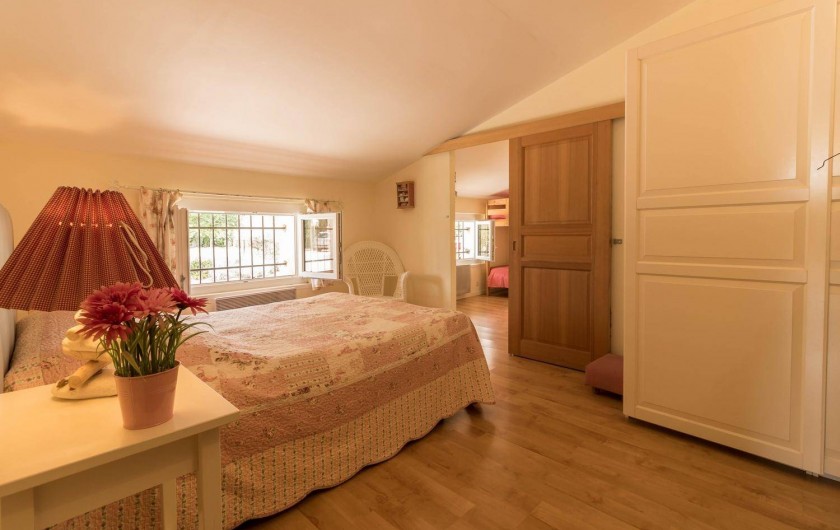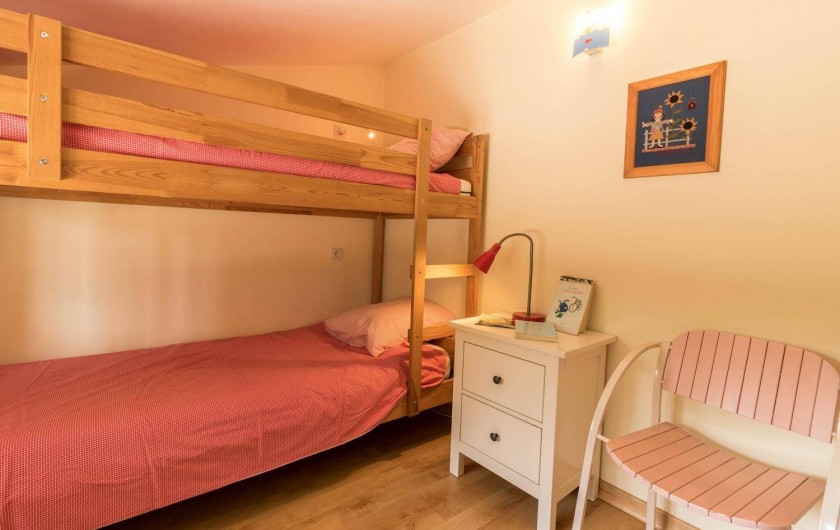 entièrement de pleins pieds, confortable, décoration soignée et coquette, beaux meubles de qualité, équipements modernes avec tout le confort nécessaire à la vie en vacances. Vous disposez d’une grande table repas avec nappe, 6 chaises, meuble d'entrée étagères crédence, boite avec Guides et documentations touristiques. Dans la partie séjour, Internet WIFI, radio cassettes, CD, lecteur DVD, Canapé lit couchage 140/190, 1 fauteuil rotin blanc. La cuisine est équipée avec cuisson 4 feux vitrocéramique, four programmable auto nettoyant, lave vaisselle 12 couverts, lave linge 5 kg, four micro onde, frigo/congélateur 3***, cafetière à filtre, cafetière Nespresso à dosette, gril pain, bouilloire. Ainsi qu’une vaisselle complète assiettes, plats, bols, tasses, mugs, coupes, service de verre eau, vin, champagne, coca, etc. Ménagère à Couverts en inox complète, couteaux à steak, couteaux de service, couverts à salade, essoreuse à salade, dessous de plats, planches à découper. Une salle d’eau avec grande douche 80/120 multijets, lavabos, sèche serviette mural chauffant, WC, sèche cheveux, miroir grossissant, plusieurs étagères, fer à repasser, aspirateur sans sac, etc. Vous disposez d’une grande chambre avec 1 lit en 140/200, tête de lit capitonnée façon cuir blanc, literie très confortable avec sommier à lattes, matelas confort et protège matelas, armoire de rangement 1/2 penderie, 1/2 lingère, cintres en bois adulte, cintres enfants, 2 chevets avec lampes, grande commode 4 tiroirs avec miroir, couverture, oreillers. Plus une petite chambre avec 2 lits superposés 90/200 avec sommiers à lattes, matelas confort et protège matelas, couette, oreillers, en général les draps sont apportés par le locataire ou fournis avec supplément, commode, jeux de société et livres d'enfants, 1 chevet avec lampe + 1 lampe murale en hauteur. Si besoin, nous pouvons mettre à disposition une chambre supplémentaire avec supplément. Vous disposez également de tous les commerces à proximité.