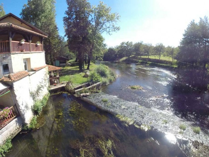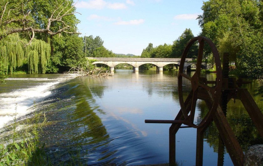 Nous vous proposons une gîte conservant le caractère authentique du Moulin, avec vue panoramique sur notre magnifique rivière la Dronne, le pont et le barrage.