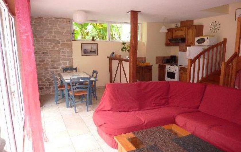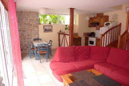 EQUIPEMENTS : Cuisine ouverte sur salon salle à manger entièrement équipée, réfrigérateur, congélateur, cuisinière, four, micro-onde, cafetière. Salon avec télévision couleur. Machine à laver le linge.