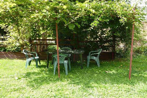 Un très bel espace d'environ 500 m2 vert entouré d'arbres.