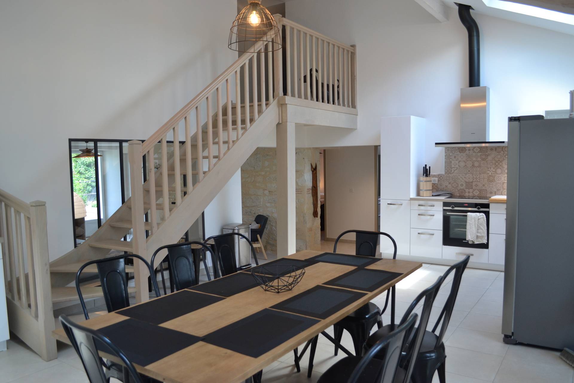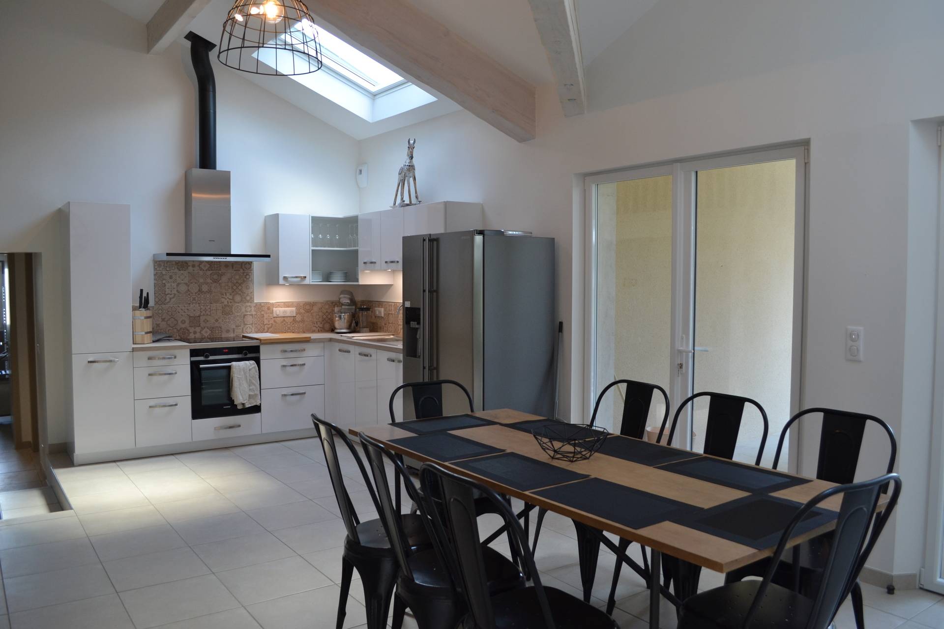 - une cuisine toute équipée donnant sur une terrasse ouverte sur le parc et la piscine 6x12.