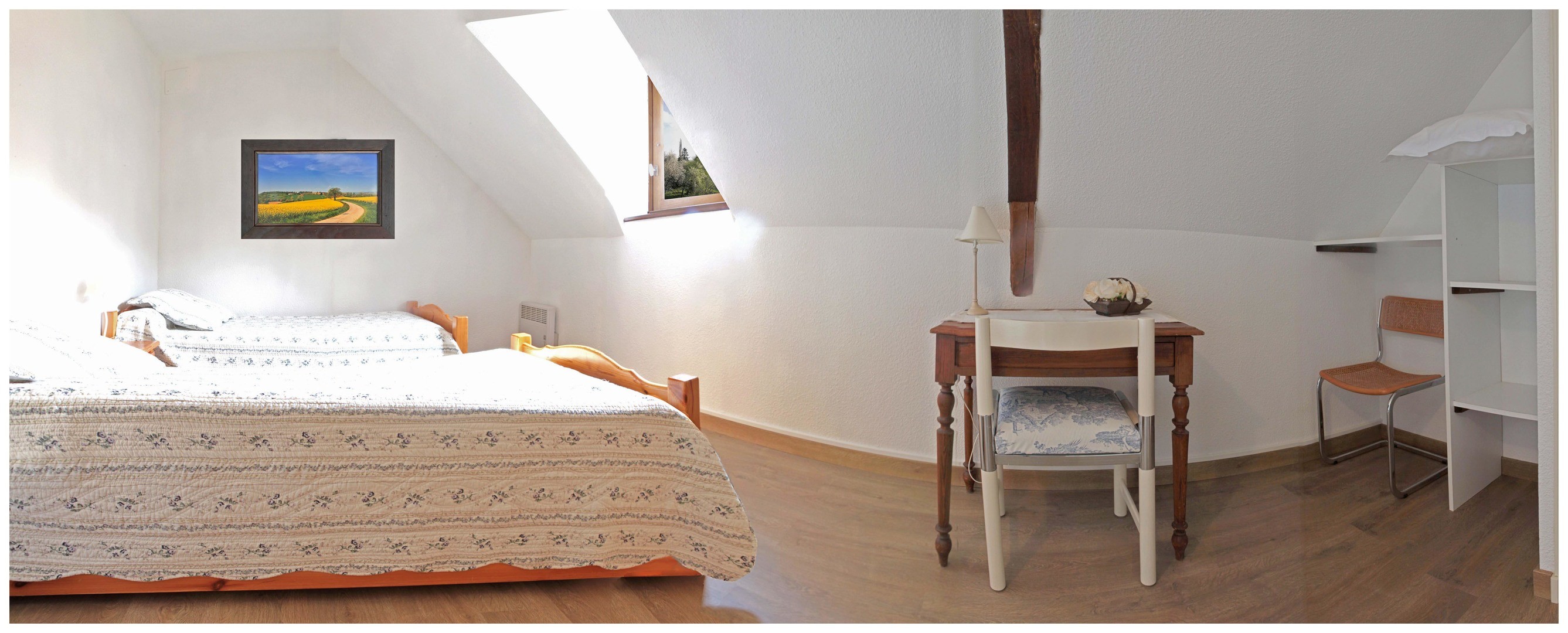 .Les chambres sont en mansarde et comportent chacune un placard de rangement ; les lits sont pourvus d'oreillers, les couvertures sont fournies mais pas les draps. Le salon est équipé d'un BZ.