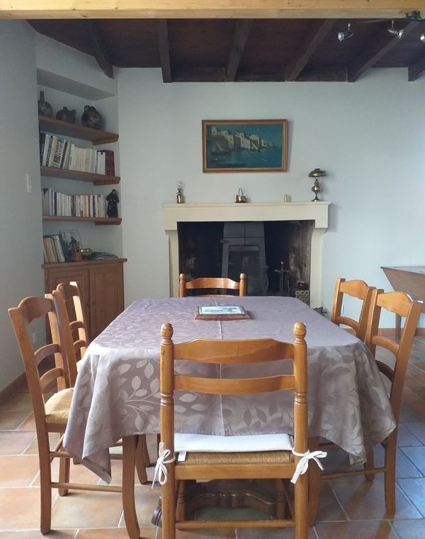 Rdc: grande salle à manger avec cuisine ouverte et cheminée, salon TV wifi bibliothèque. + un wc.