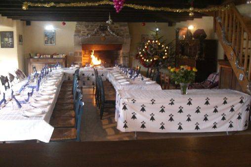 Notre grande longère bretonne rénovée récemment se situe en pleine campagne dans un endroit calme et verdoyant.Elle se compose de trois chambres pour 2 personnes(si couple) dont une chambre qui peut servir pour des enfants (3 ou 4 couchages enfants si besoin)et de deux couchages d'appoint,une grande salle d'eau a l'étage avec douche et baignoire et un sanitaire. Au rez-de-chaussée une grande salle de restauration avec tables , chaises et buffets de rangements pouvant accueillir une trentaine de convives maximum(nous proposons des repas de famille,anniversaires...). Une grande cheminée … illuminera le coin détente avec deux grands canapés et fauteuils avec télévision et bibliothèque ,une connexion wifi .Vous apprécierez de vous rafraichir au bar breton situé dans la salle a manger avec frigo de bar ,évier, chaine hi-fi et un sanitaire .Nous disposons aussi d'une grande cuisine semi pro avec un piano de cuisson,four,frigo congélateur un bac de plonge, un lave vaisselle, un robot chef kenwood,une billig pour les crêpes ,une plancha ainsi que tous les ustensiles de cuisine adéquat. Une petite cheminée dans la cuisine pour les cuissons au feu de bois permet de préparer des plats traditionnels bretons.Nous travaillons avec des produits du terroir biologiques ou naturels (nous avons 3 grands jardins potagers, des poules et des lapins...). Nous pourrons vous informer sur la culture bretonne afin de vous la faire découvrir vraiment.Nous nous feront un plaisir de vous diriger vers les activités et les sorties a faire dans notre magnifique région ou les contes et légendes se fondent dans les landes et les forets dans des décors de toute beauté . Nous proposons aussi des prestations d'initiation a la cuisine bretonne. Le gite dispose d'une terrasse avec table et chaises et d'une grande pelouse devant.Tout prèt des petits chemins de terres sillonnent la campagne pour se ressourcer dans la nature,on n'y voit pas de voiture et sont praticables en vélo.Vous pourrez vous rendre a pied au centre équestre qui est a un kilomètre et prendre la voie verte pour faire de la randonnée.Le fameux canal de Nantes à Brest est a 4 kilomètres avec ses jolies écluses .Les nombreux ruisseaux, rivières, canaux et étang offrent d'innombrables possibilités pour la pèche au brochet ,au sandre ,au poisson blanc ainsi qu'a la truite et a la carpe.Les spots de pèche sont a moins de 20 minutes de route et nous les connaissons bien.Les nombreux gibiers présent dans le secteur feront le bonheur des observateurs et des chasseurs(a partir de septembre). En automne des sorties champignons sont possibles(cèpes,girolles...). En hiver des soirées veillées contes pourront ètre organisées. Lire moins Lire la suite