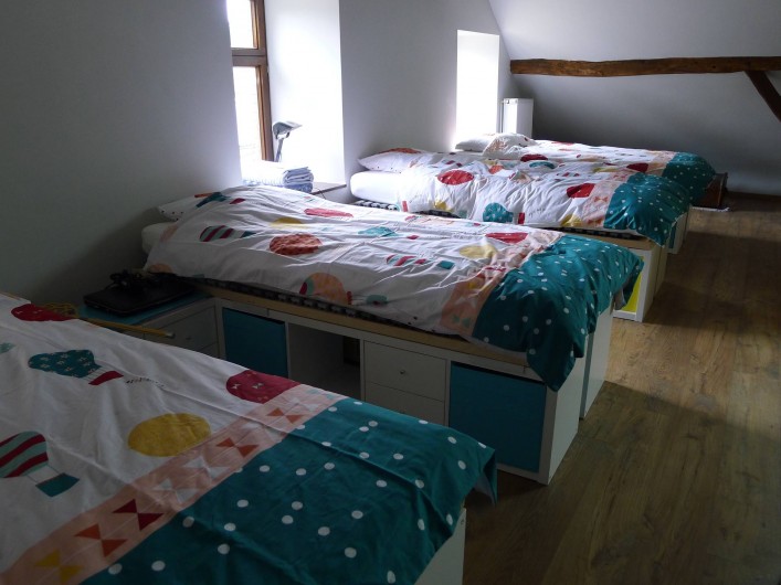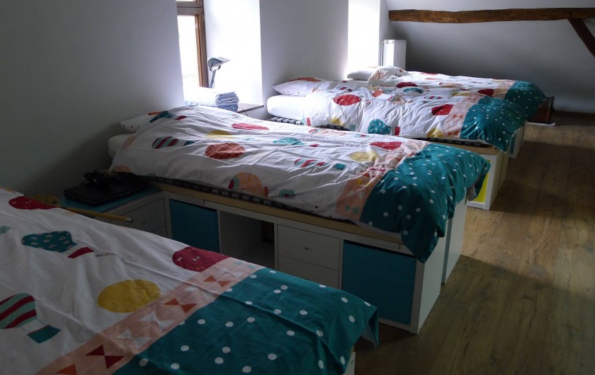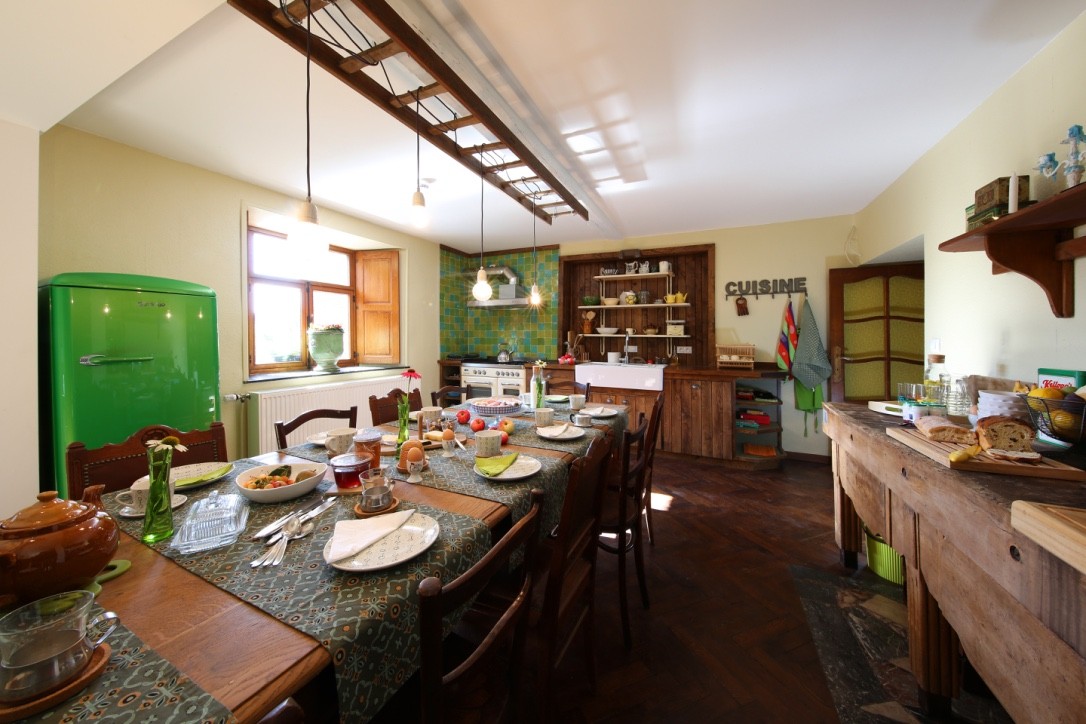 Equipèe de 6 chambres doubles avec douche et lavabo et deux grands greniers avec salle de bains nous pouvons accueillir des groupes jusqu'à 24 personnes. Deux cuisines équipées sont à votre disposition - une de 14 personnes et une de 24 personnes.