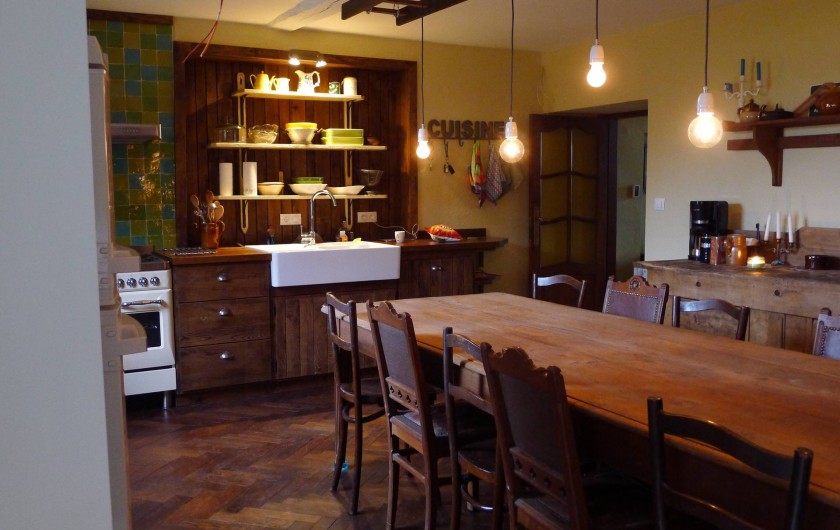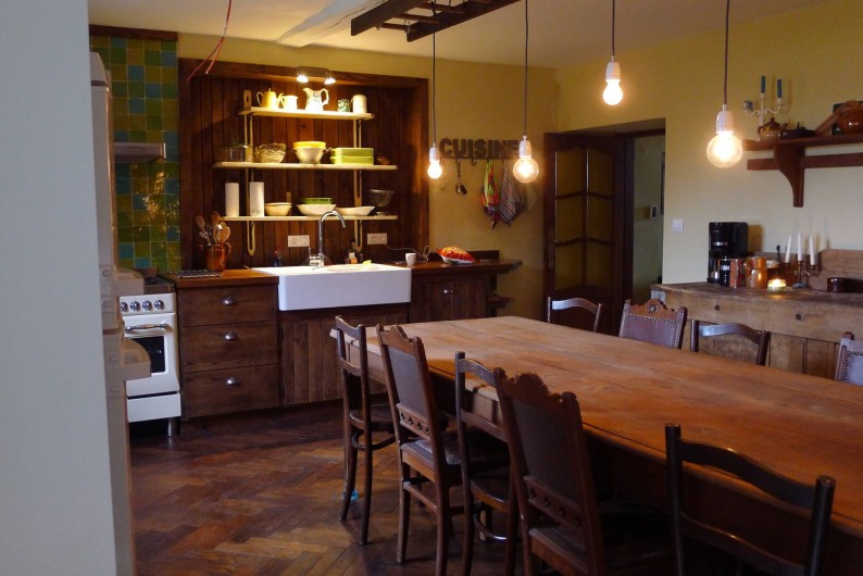 La maison est composée de 2 hébergements communicants (La Maison et La Grange) qui peuvent accueillir maximum 24 personnes. Les deux parties peuvent être louées séparément (10 ou 14 personnes) ou ensemble (24 personnes). Pendant une même période, nous nous limitons volontairement à un seul groupe afin de vous permettre de pleinement apprécier la maison, le grand jardin et les environs.