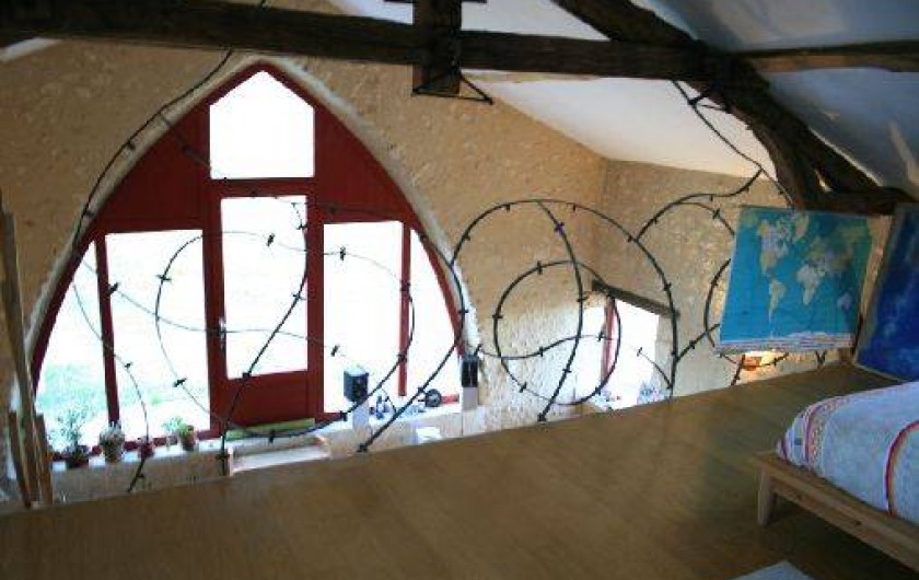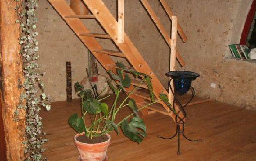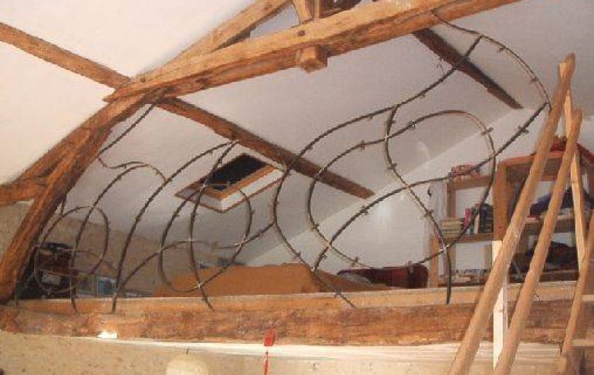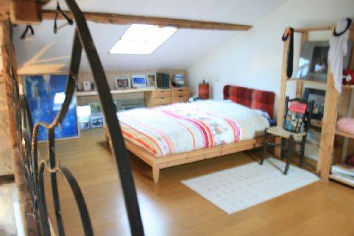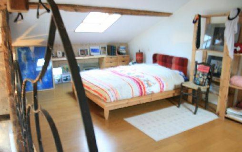 Elle possède une grande pièce de 50 m2 sur deux niveaux avec au rez de chaussée avec coin cuisine, coin télé, coin salle à manger. A l'étage, en mezzanine, une grande chambre de 25 m2 avec un grand lit (possibilité de rajout d'un lit sur demande préalable). Une petite chambre de 12 m2 avec un lit 1 place et une salle de bain avec WC . Une