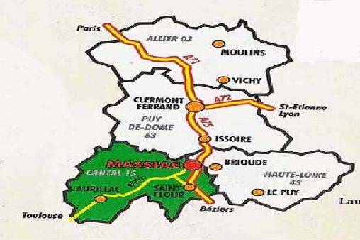Situé à 65 km au sud de Clermont Ferrand, à 30 km au nord de Saint Flour et à 40 Km de la Station de ski Le Lioran, c'est un carrefour stratégique pour rayonner sur toute l'Auvergne. Le pays de Massiac est une zone de contact entre les Monts de la Margeride finissants et les pâturages d'altitude du Cézallier.