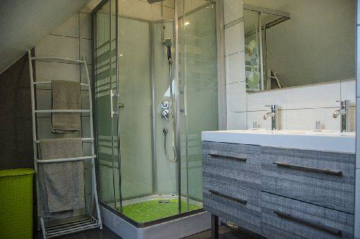 double, ch3: 1 lit 140x190), 2 salles d'eau, meuble double vasques, lave-linge et sèche-linge, 2 WC séparés et un cellier. Forfait ménage possible. Linge de maison fournis, lits faits à l'arrivée. Coté nature: parking privatif, cour, jardin, animaux (chèvres, poules, oies). Promenade dans la forêt de 48 ares et verger (40 arbres fruitiers), salon de jardin, espace jeux enfants, pétanque, table de ping pong. Un jacuzzi et un sauna sont à votre disposition en sus sur réservation au rez-de-chaussée du gîte.