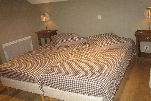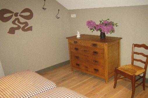 1er étage : 1 chambre avec salle d'eau privative et wc indépendant. 2 chambres communiquantes avec salle d'eau et wc privatif ( 6 lits 80 cm jumelables). couleurs douces et tendres pour un bon repos. chauffage au sol électrique et radiateurs électriques inclus dans les tarifs. lit pliant et chaise pour bébé. très agréable jardin de 300 m2 avec petite
