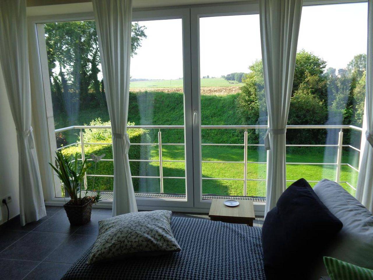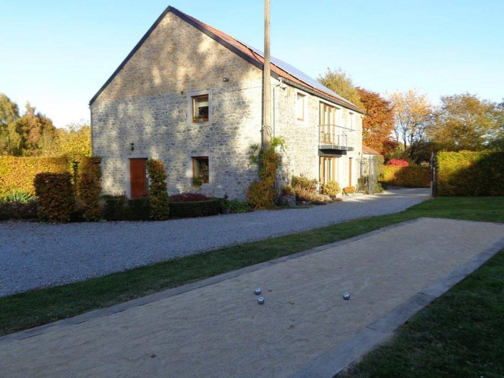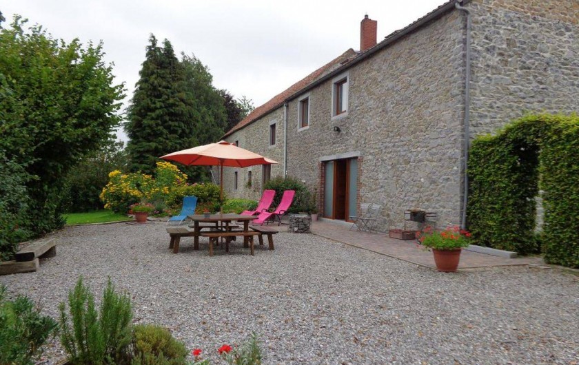 En journée, vous pourrez profiter du soleil et d'une vue sur la campagne et du village. Du mobilier de jardin est à votre disposition, ainsi qu'un coin barbecue.