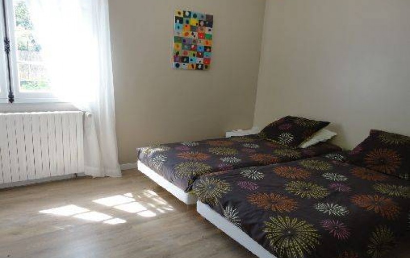 Chambre 2 : 2 lits 90/200 2 tables de nuit, lampes de chevet, commode.