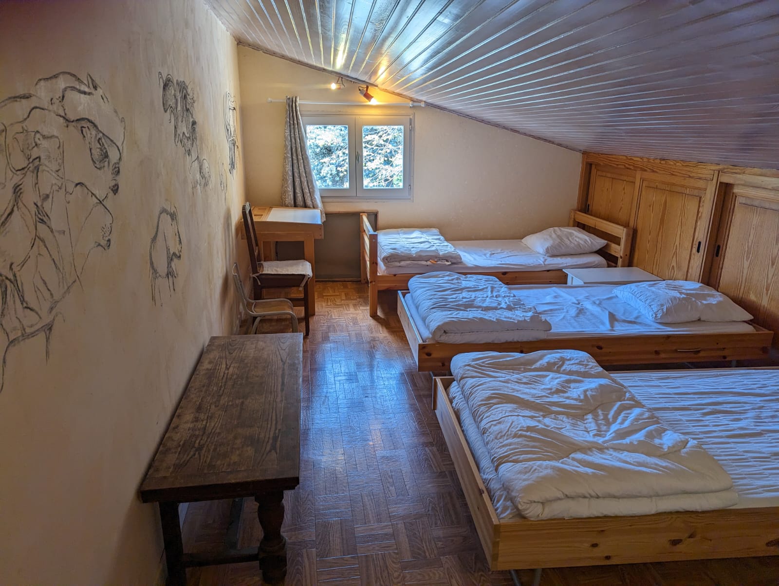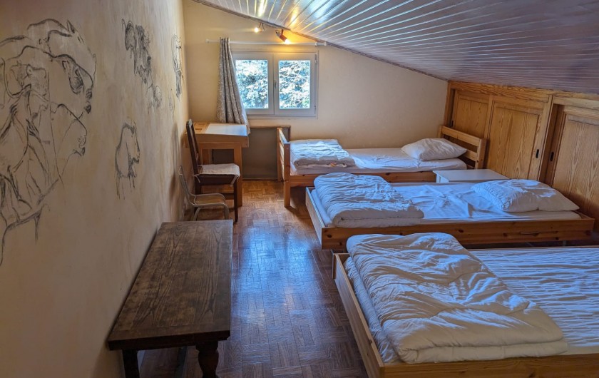 4 chambres, une salle d'eau (douche) et WC. Il y a 10 couchages (1 chambre à 4 lits -2 lits gigognes- et 3 chambres avec 1 lit double) et un lit d'appoint pour une personne. Matériel de puériculture à disposition.