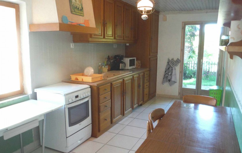 Notre gîte peut accueillir jusqu'à 10/11 personnes + 2 enfants en bas âge (lits bébés). Il s'agit d'une ancienne maison de ferme et sa bergerie restaurée, avec au rez-de-chaussée : cuisine, salon et salle à manger, grande cuisine équipée avec accès direct à la terrasse, salle de bain avec baignoire, 2 WC et à l'étage :