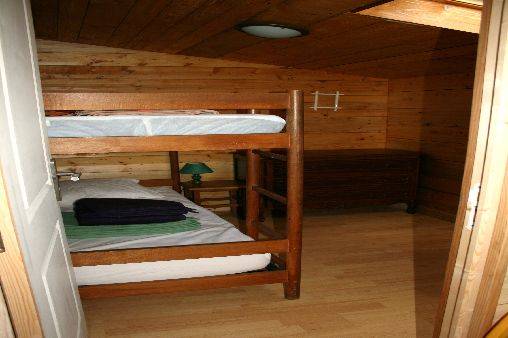 Au rez-de-chaussée : salon/séjour de 30 m2 avec cuisine américaine équipée, piano, clic-clac ; salle d'eau avec WC ; chambre 2 lits superposés (possibilité lit bébé ou matelas enfant en plus).