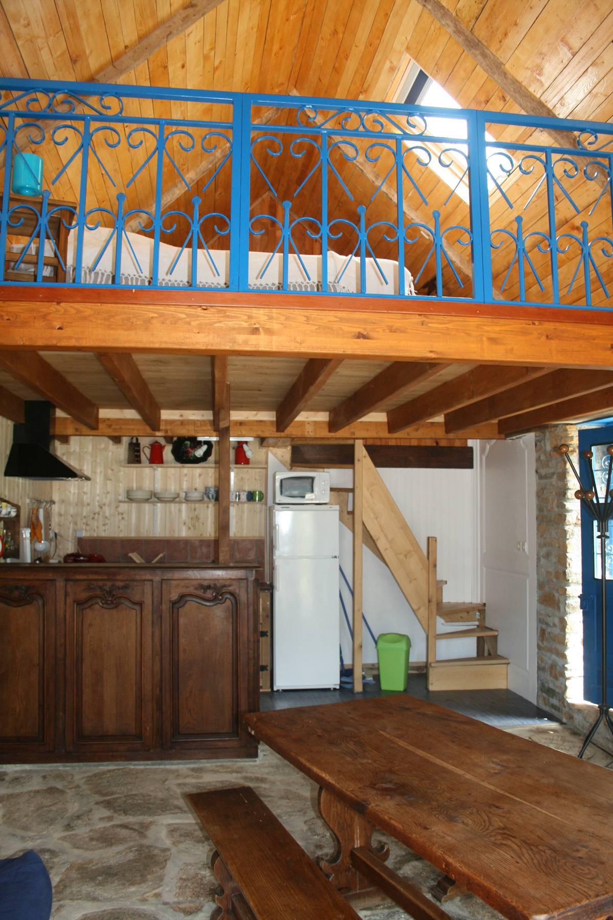 A l'étage : mezzanine avec un lit double.