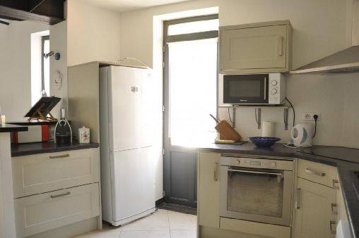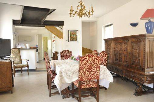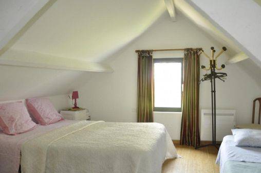 Au centre du village, gîte aménagé dans la conciergerie d'un château, rdc + étage. Terrain non clos privatif, cour, terrasse, parking privé. Rdc : Séjour/coin-cuisine, coin salon, 1 ch (1 lit X 160), 1 s. d'eau, 1 wc séparé. Etage : 2 chambre avec chacune 1 lit 2 pers. 1 lit bb. Caution, loc. draps, service ménage.