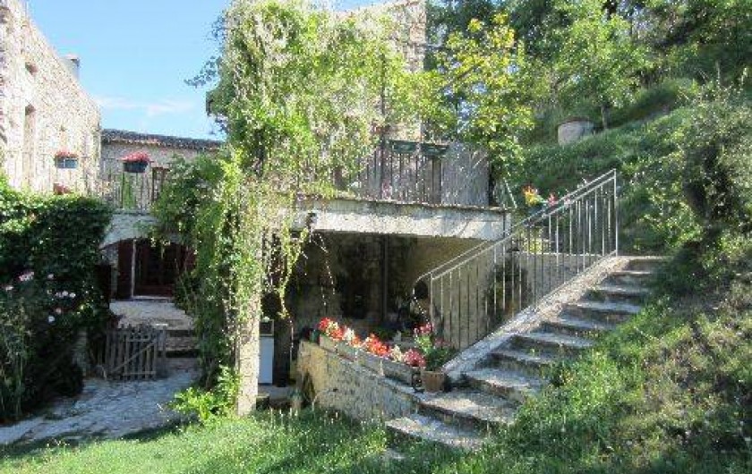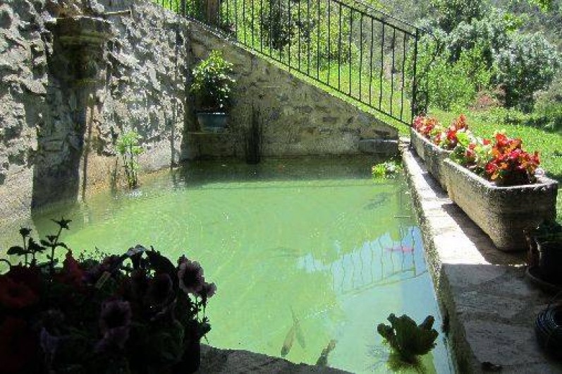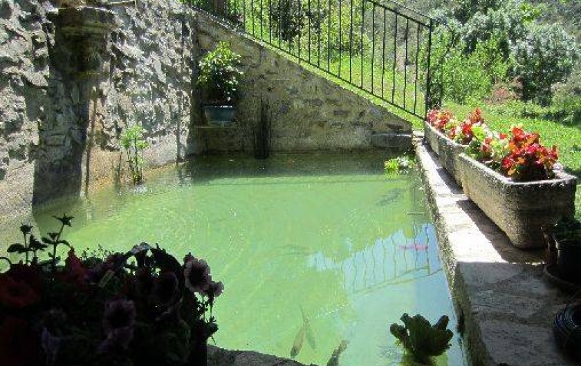 Gîte indépendant rénové en pierres de tailles qui comprend 2 niveaux : le premier avec une grande terrasse fleurie qui donne sur un bassin d'où coule l'eau des sources, ensuite 2 pièces attenantes :cuisine aménagée et salon avec télévision.
