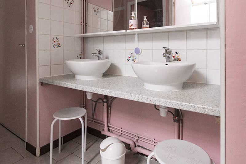 se compose : au rez de chaussé , d'une grande entrée , d'une grande salle, avec cuisine attenante . Un wc handicapé , de sanitaires composés de un lavabo double, deux wc et de deux douches.