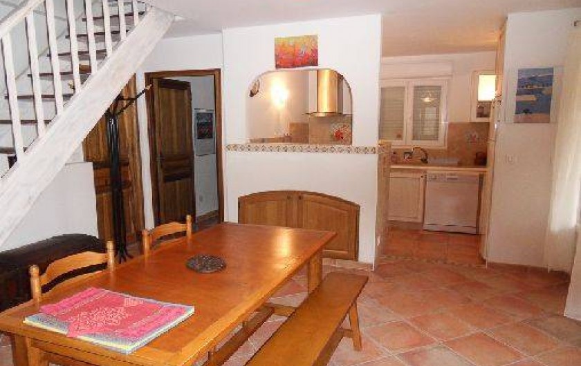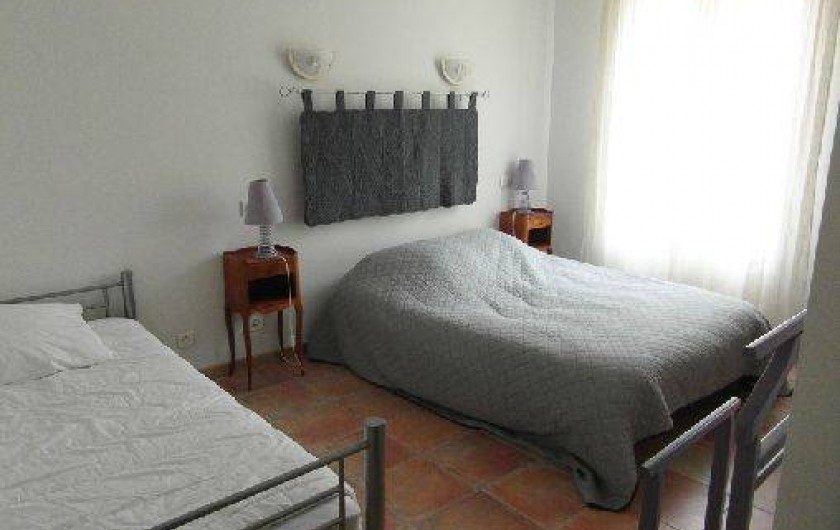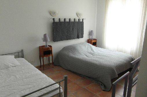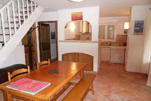 couverte. Entièrement au rdc. Hall d'entrée. Wc. Cuisine équipée/séjour/salon. Chambre 1 : 1 lit 140 + 1 lit 90, s. d'eau/wc. Chambre 2 : 1 lit 140, s. de bains/wc. Chauffage électrique.