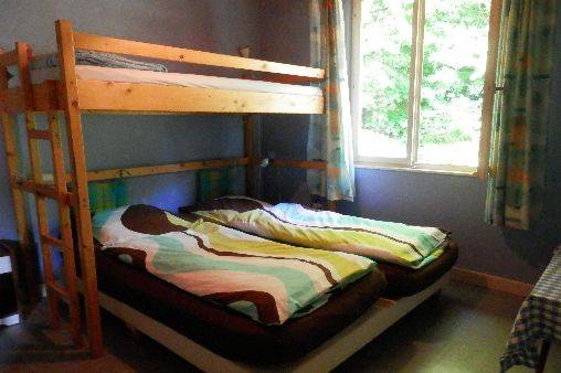 Cuisine équipée et indépendante. Séjour avec cheminée, télé et lecteur DVD. Un lit en 140 dans une chambre et dans l'autre un lit en 2*80 plus un lit superposé. Dans celle-ci se trouve un lavabo.