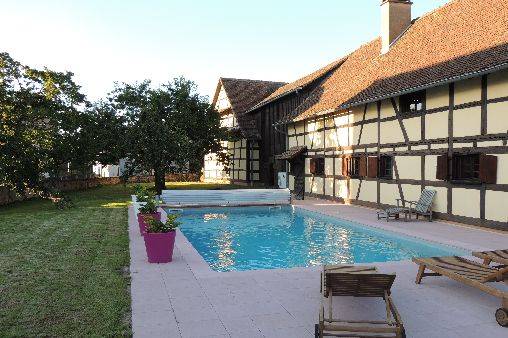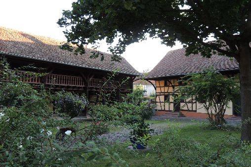 Location d'une maison dans un corps de ferme restauré, entièrement clos, à 18 kms de Strasbourg, et 17 Kms d'Obernai, sur la route des vins.