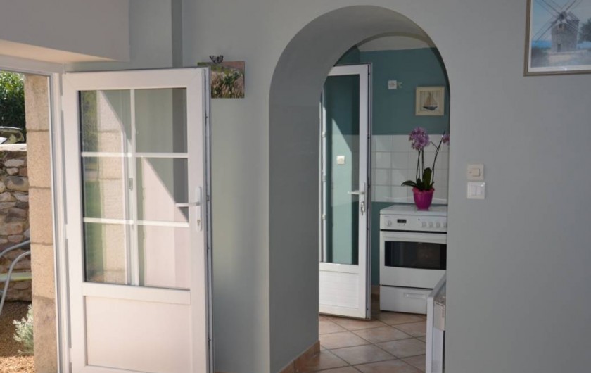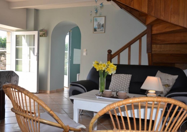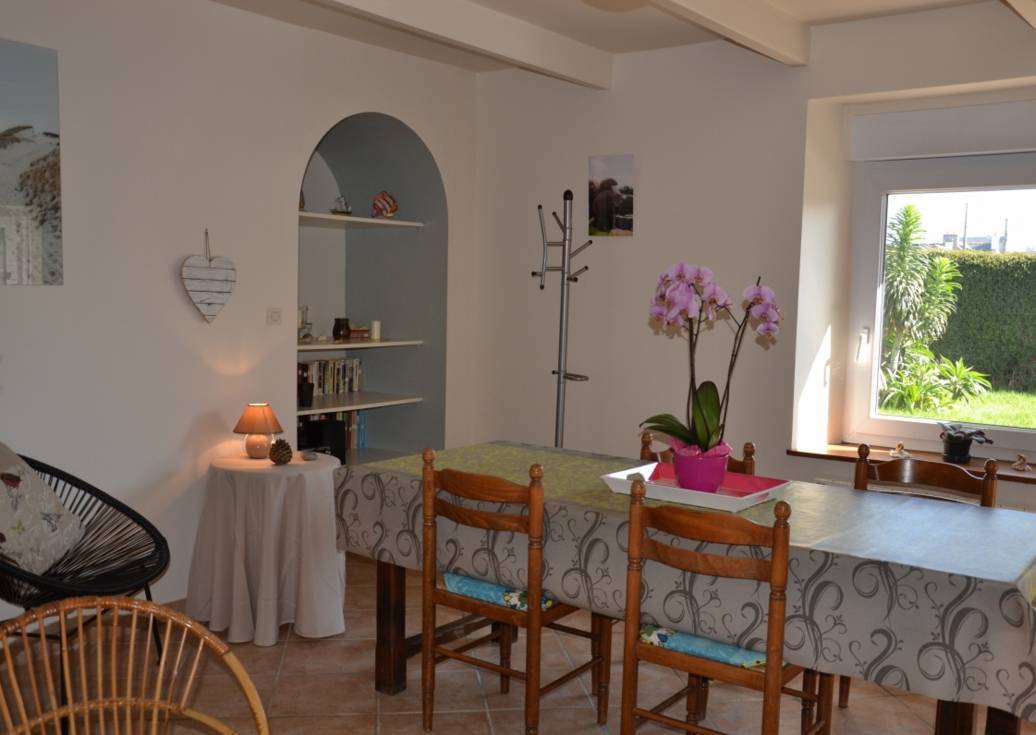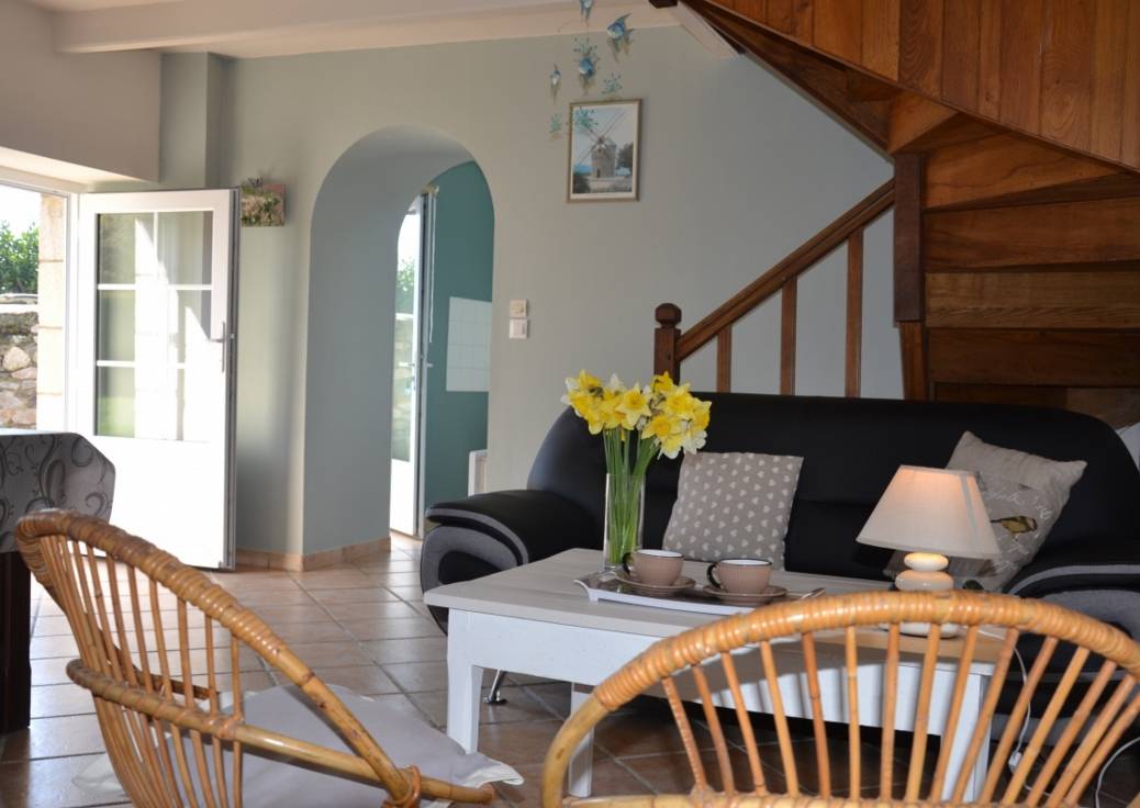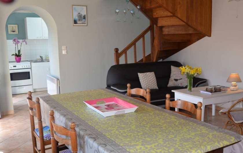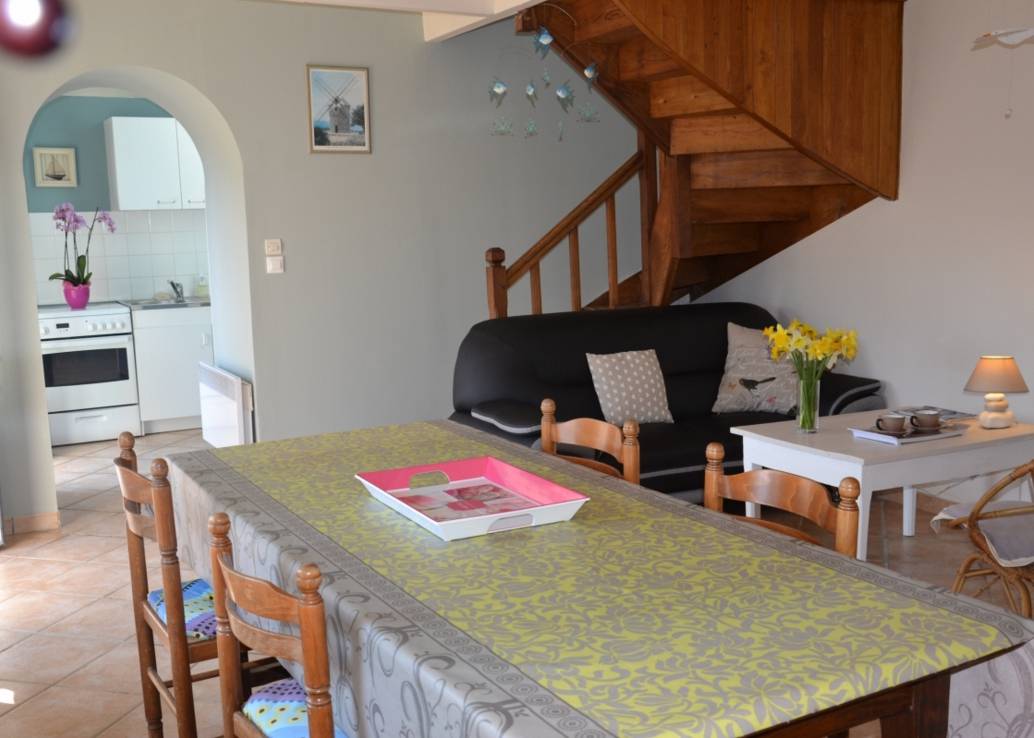 Votre location de vacances comprend au R.d.c: cuisine séparée du salon séjour par une voute, déco mer. Etage: 1 chambre (1 lit 2 pers), salle de bain avec douche et wc.