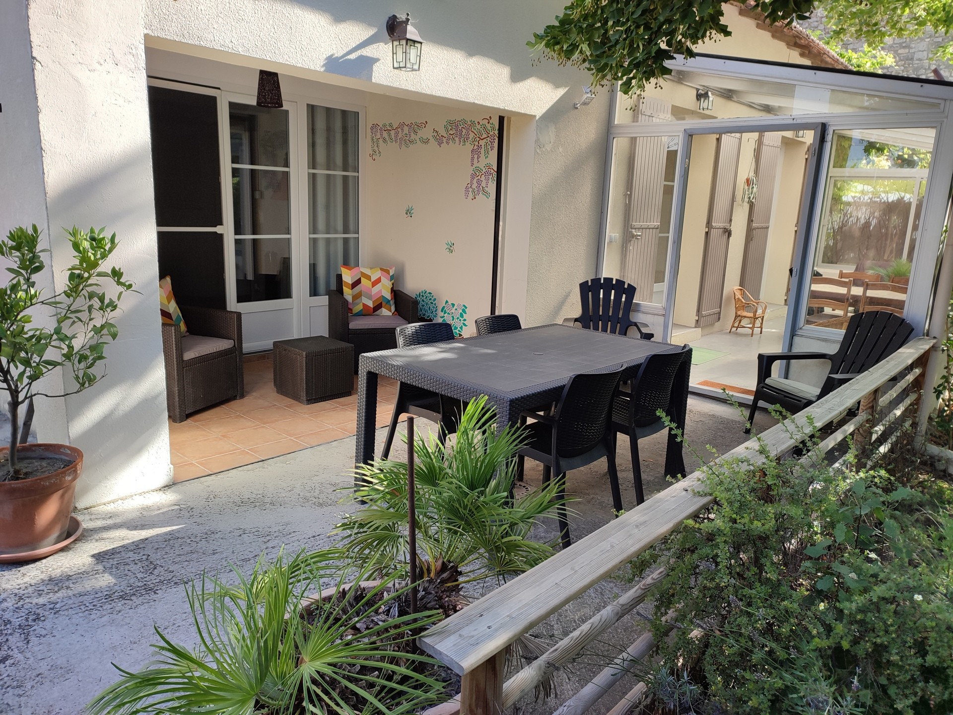 Situé en Provence au cœur du Comtat Venaissin, à proximité de la cité des Papes et du Festival d'Avignon, proche du Luberon, du Mont Ventoux, des Dentelles de Montmirail, de Fontaine de Vaucluse, des ocres de Roussillon, et autres sites pittoresques, le gîte du Tilleul de 85 m² est fait pour accueillir 4 personnes maximum. Vous y trouverez tout le calme et le confort nécessaire à l'abri d'un Tilleul bicentenaire.