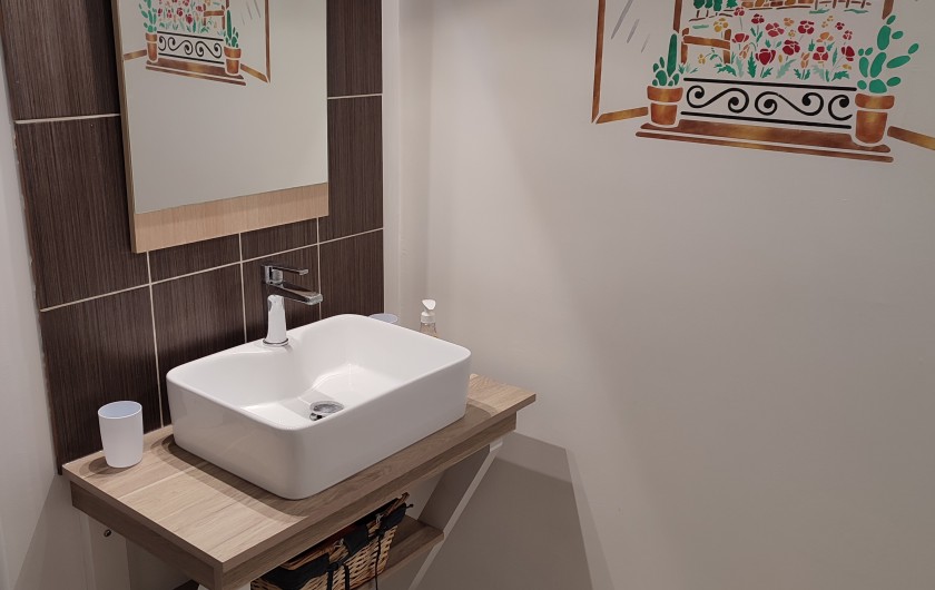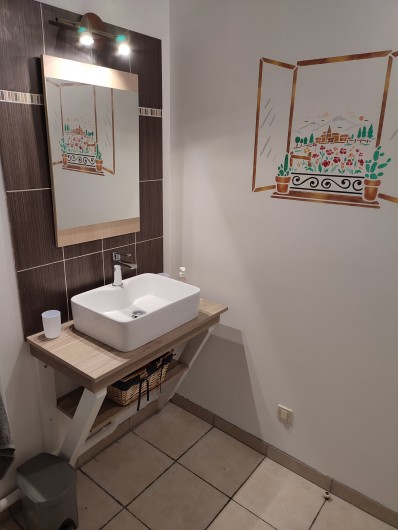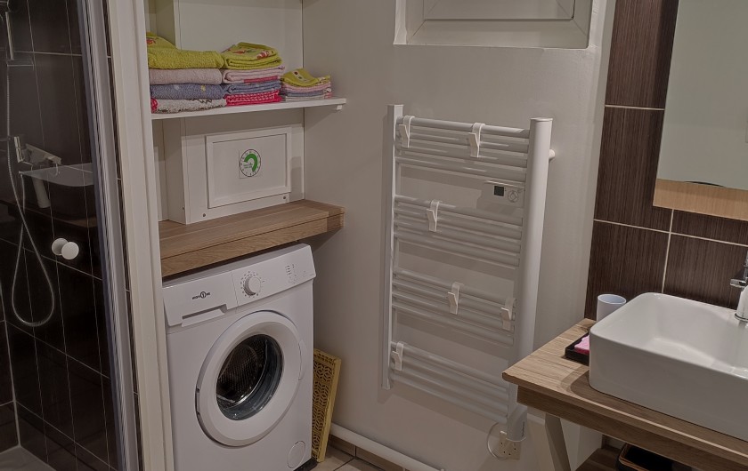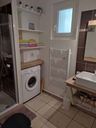 - Salle d’eau avec douche, lavabo et machine à laver (+ sèche cheveux)