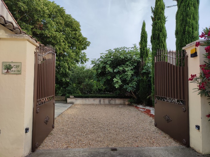 - Cour du gîte entièrement close fermée par portail automatisé avec 1 place voiture