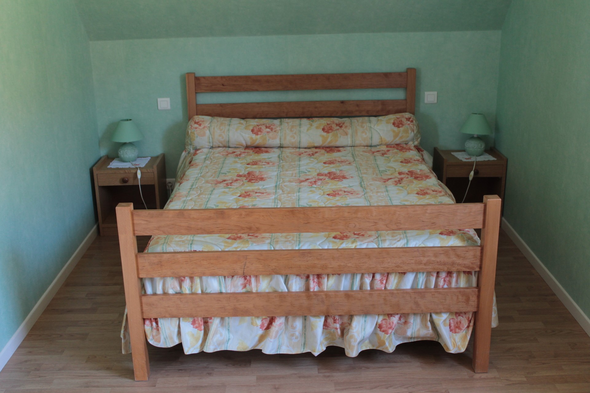 deuxième salle de bain avec baignoire se situent à l'étage. La chambre bleue accueille jusqu'à deux personnes dans un lit en 140 cm et offre une vue imprenable sur les montagnes. Dans la chambre verte peuvent dormir trois personnes dans un lit en 140 cm et un lit en 90 cm.