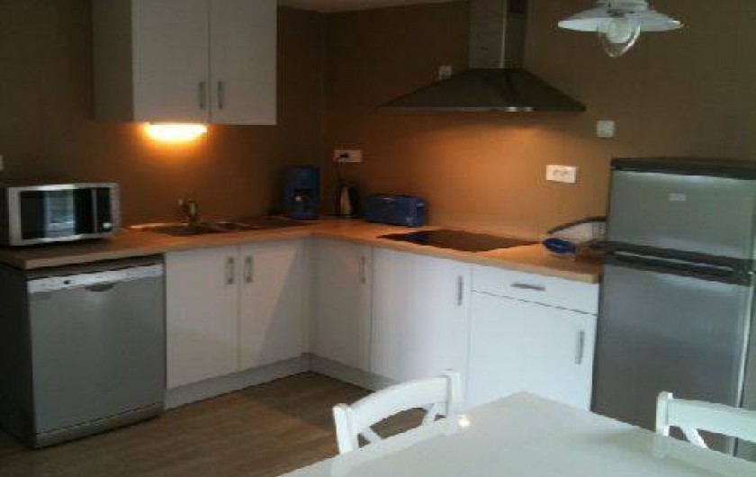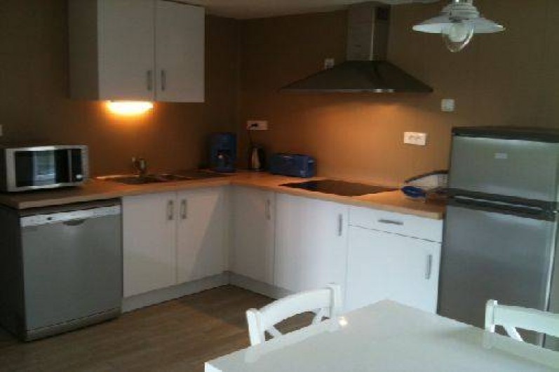 Il est composé d'un espace nuit avec 1 lit double et 2 lits simples), un espace vie avec 1 canapé et cuiszine toute équipée (réfrégirateur, lave-vaisselle,cafetière, bouilloire, micro-onde, four...), une sde + wc avec lave-linge.
