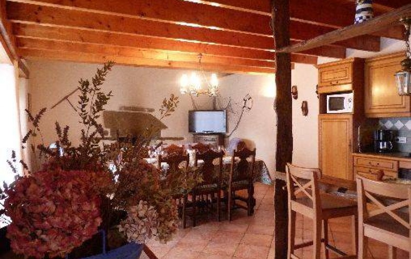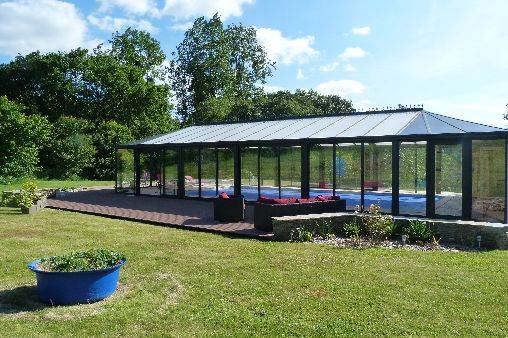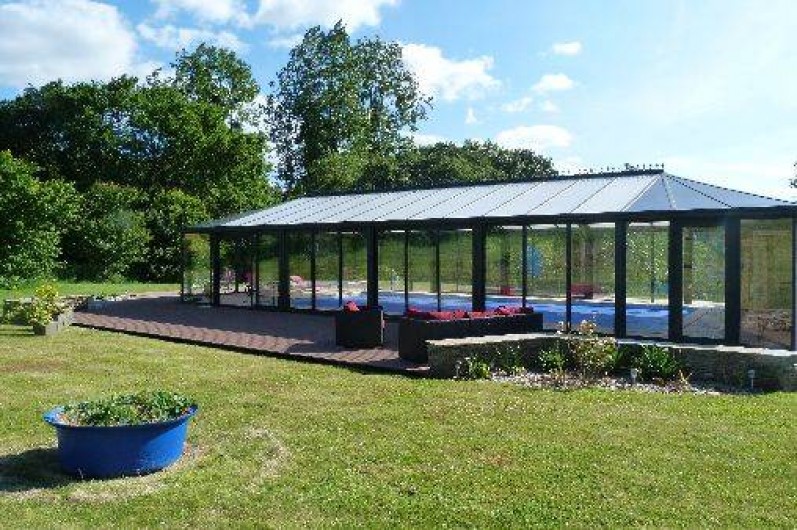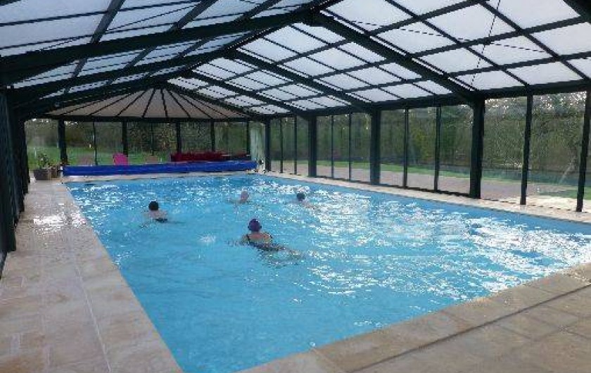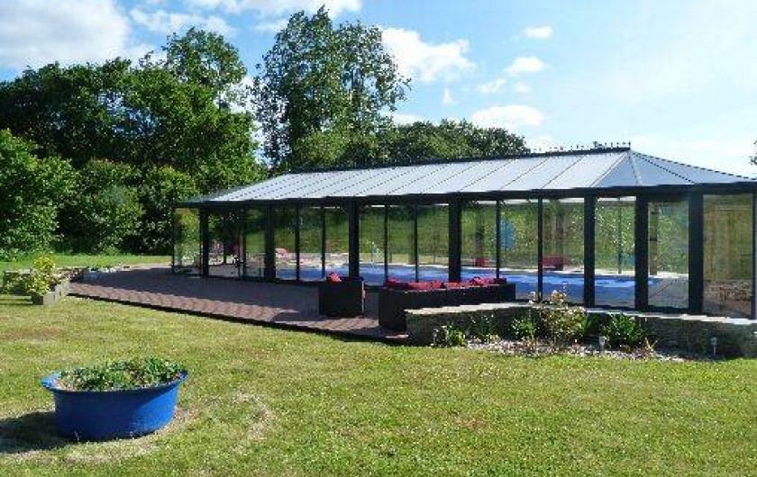 de séjour avec cuisine équipée, salon (cheminée), 1 chambre (1 lit 160) avec TV et lecteur DVD, salle d'eau avec douche à l'italienne, wc séparé. Etage: mezzanine, 2 chambres (1 lit 160) (2 lits 90), salle de bain avec baignoire et wc. Lit, chaise bébé en bois. Entrée et espace privatif. Terrasse 42 m², jardin 145 m². Portiques, transats. Chauffage Géothermie. Forfait chauffage inclu. Piscine de 6x12m couverte et chauffée à 29° dans un espace détente chauffé avec un sauna infrarouge 3/4 pers. Terrasse 150m² avec salon de jardin. Ping-pong, badminton. Toboggan. Allée de boules. Barbecue. Accès internet filaire. Taxe de séjour à régler sur place.