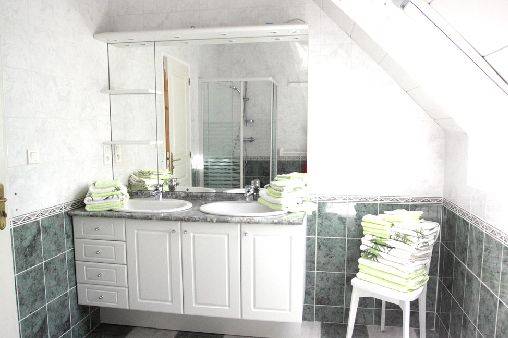 et douche, wc. Chauffage aérothermie au sol. Équipement bébé à disposition. Terrain de 2000 M2, terrasse, salon de jardin, barbecue, chaises longues