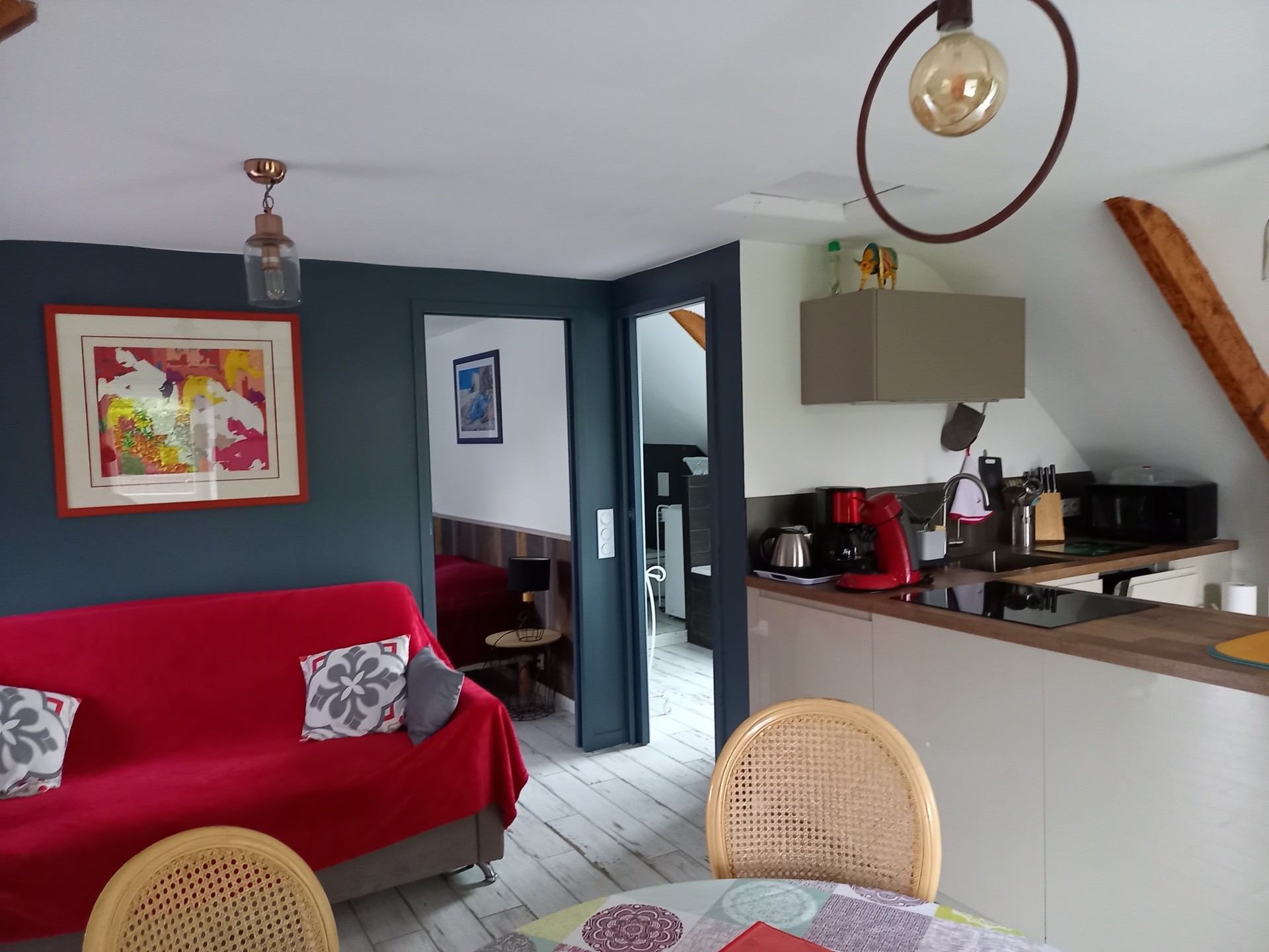 Logement dans ancien corps de ferme récemment rénové accolé à la maison des propriétaires mais complétement indépendant, au 1er étage mais de plain pied à l'arrière avec un accès indépendant (dénivellation du terrain). Logement d'environ 40M2 pour 4 personnes maximum composé : 1 séjour-salle à manger avec un canapé convertible (couchage 2 personnes, en 140 et de très bonne qualité), 1 coin cuisine très bien aménagé (plaques induction, four, micro-onde, refrigérateur etc..) 1 chambre indépendante avec 1 lit 2places (160), 1 salle de bain avec baignoire et douche à … l'italienne, WC, lave-linge, sèche-cheveux. 1 Terrasse à l'arrière du batiment donnant accès sur un petit jardin clos et d'un grand terrain, aucun vis à vis. Le logement est à 2kms du centre ville de Ploermel très bien founri en commerces. Pou les loisirs vous êtes à 5mm du lac au duc , de la voie verte Mauron-Questembert, accès par la voie verte au canal de Nantes à Brest. Vous êtes également à 15mm de la mythique forêt de Brocéliande et de ses légendes Arhturiennes. Lire moins Lire la suite