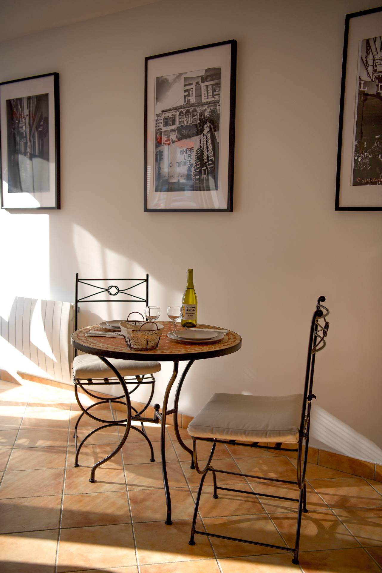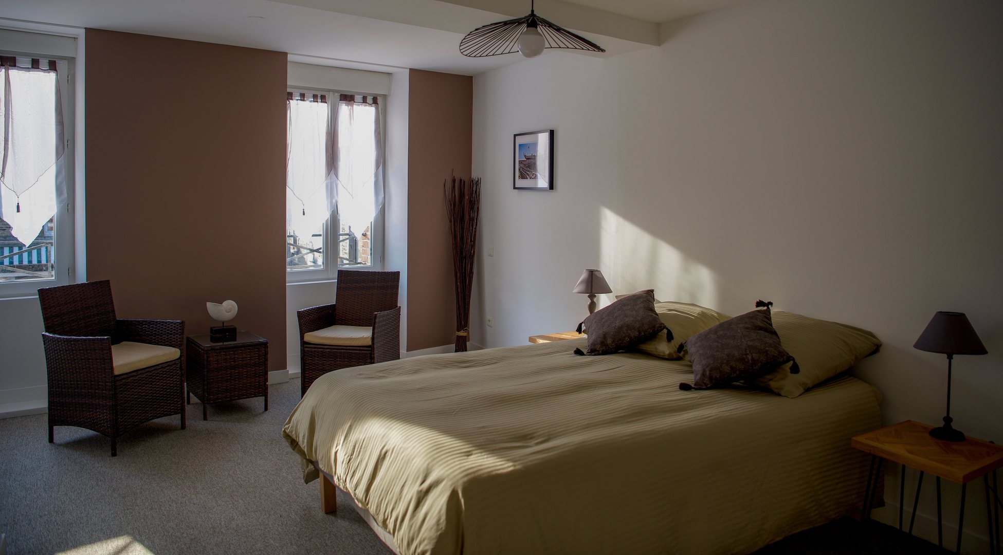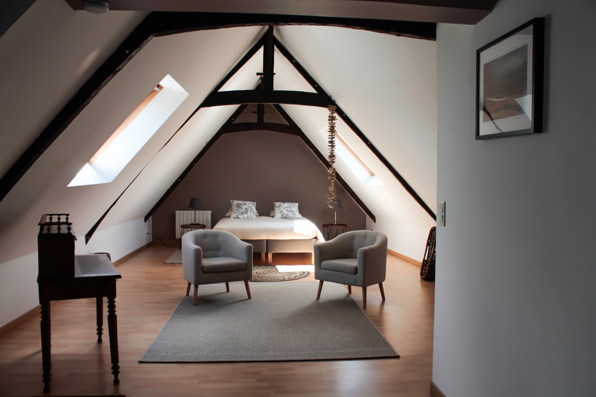 Toutes les chambres sont en étage. Une cuisine et une zone repas sont disponibles au RDC.