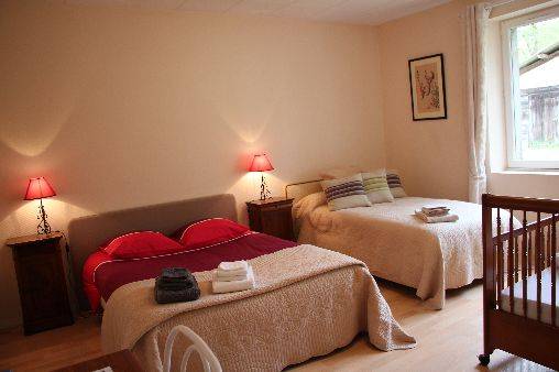 équipée, 2 chambres (2 lits 140, 1 lit 110, possibilité d'ajouter 2 lits d'appoint), salle d'eau (douche), WC, cellier. Lave-linge, lave-vaisselle, micro-ondes. Terrasse couverte. Barbecue. Salon de jardin. Vue sur étang (canards sauvages, oies). Balades et randos. Chauffage éléctrique, insert au bois. Equipement bébé (lit à barreaux en bois, baignoire, chaise haute...). Draps, serviettes de toilettes et linge de maison fournis. Possibilité de ménage (50€). Taxe de séjour 0.83€ par personne et par nuit (enfant moins de 13 ans exonérés)