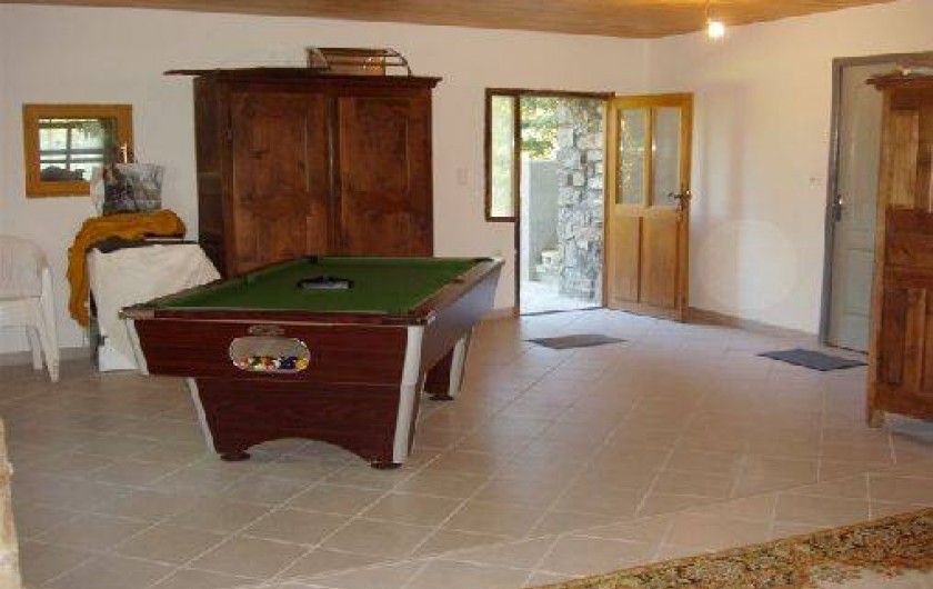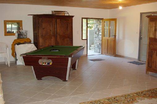 La maison s’organise sur deux niveaux. Le rez-de-jardin accueille une salle de jeux avec billard, une chambre avec un lit deux