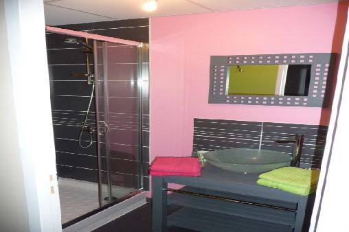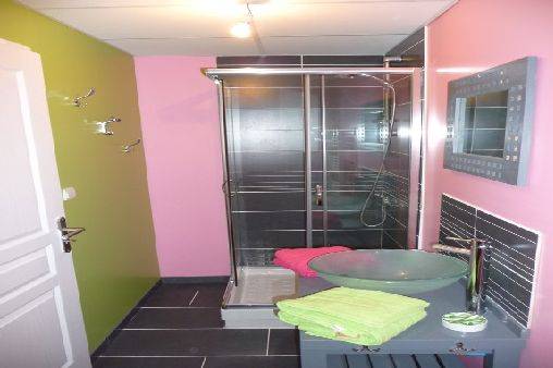 Gîte neuf pour 2 à 4 personnes, salle de bain avec lavabos douche 80x80 et wc. Vous disposez au choix d'une chambre avec un lit de 160 ou de l'autre chambre avec un lit de 140 et d'un salon ,cuisine équipée .