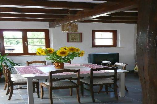Gîte traditionel neuf 2009. Petite maison de campagne, déplacée et reconstruite dans un village du Jura Alsacien (Sundgau) à proximité des frontières Suisse et Allemande. Maison indépendante de caractère. Beau jardin fleuri et ombragé. Au rdc: cuisine équipée, espace repas, salon comportant canapé, TV, poêle à bois, salle d'eau et wc indépendant. A l'étage, 2 chambres (1 lit de 2 pers + 1 lit 1 pers; 2 lits 1 pers), wc. Au sous sol aménagé, une chambre (2 lits 1 personne), une salle d'eau. Terrasse extérieure, salons de jardin, espaces vert, parking privatif. Accès wifi. … Lit bébé et chaise haute à dispo. Adresse du gite : " La Pomme de Pin " Lire moins Lire la suite